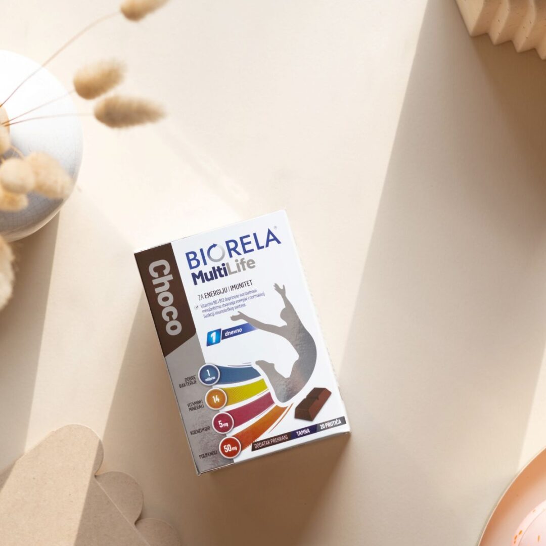 Biorela® Choco Multi Life dodatak je prehrani koji donosi spoj dobrih* bakterija, 14 vitamina i minerala te koenzim Q10 za zdrav imunitet tijekom cijele godine.